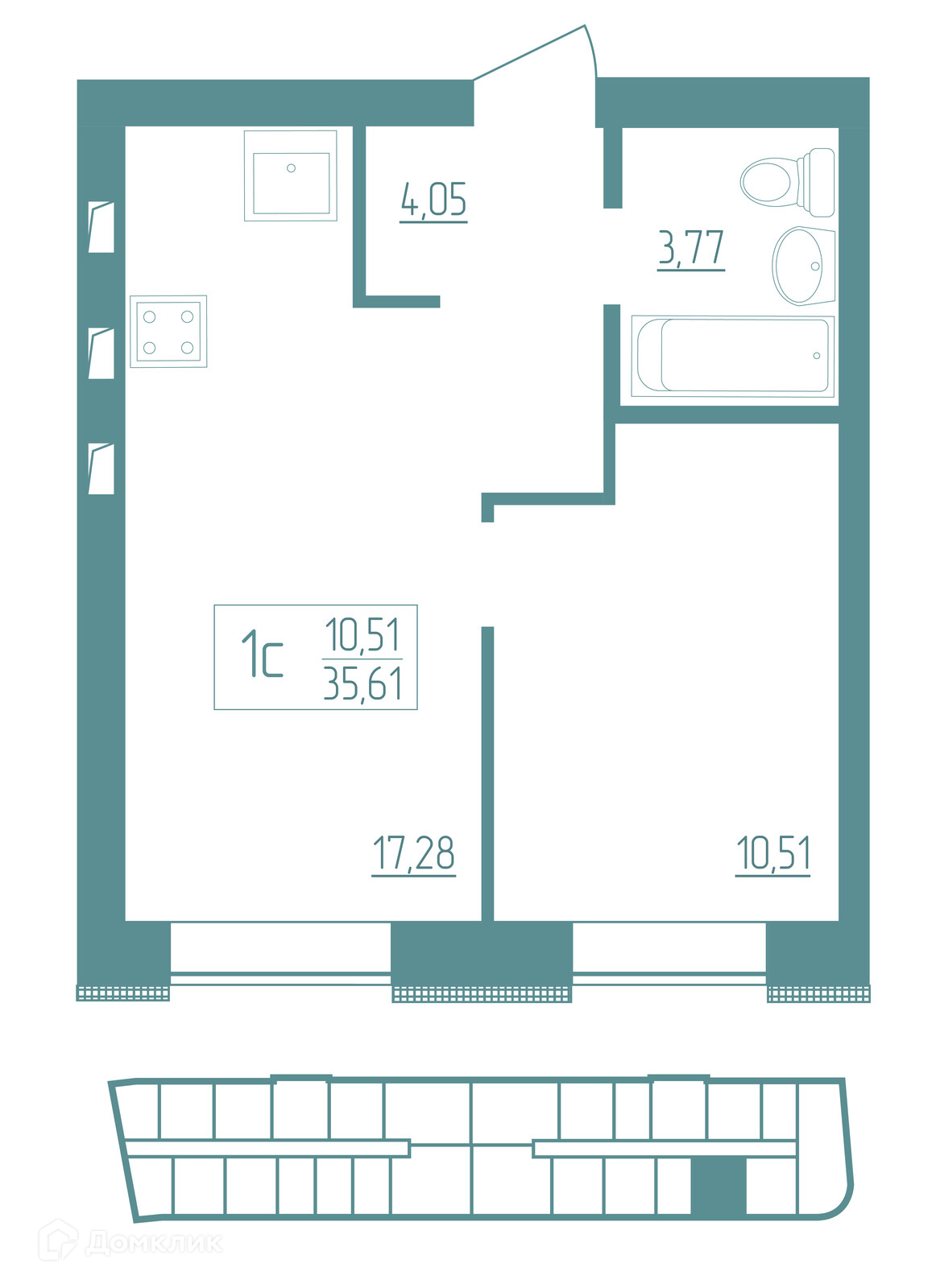 - Количество комнат: 1-комнатная квартира