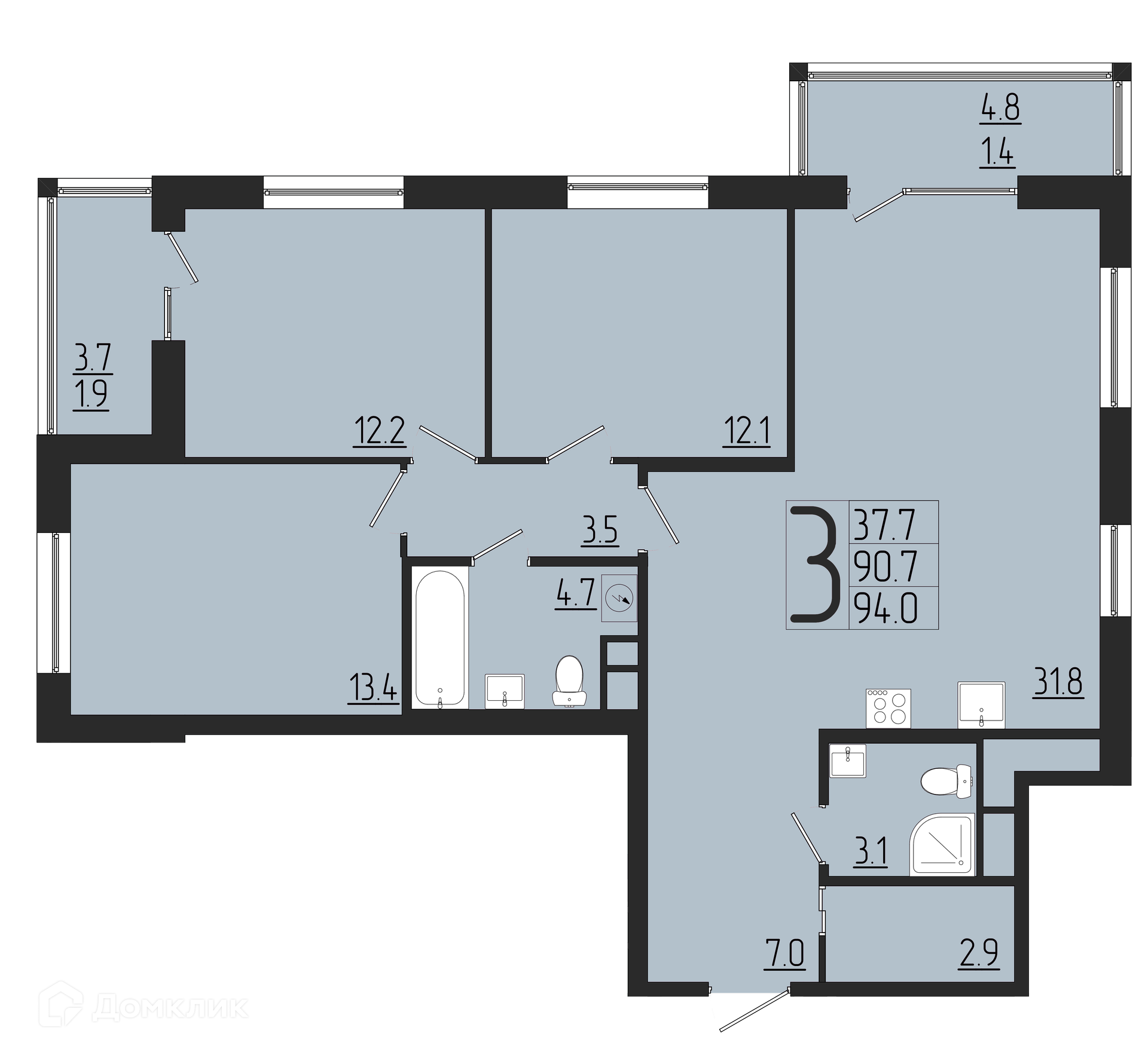 Площади квартир
