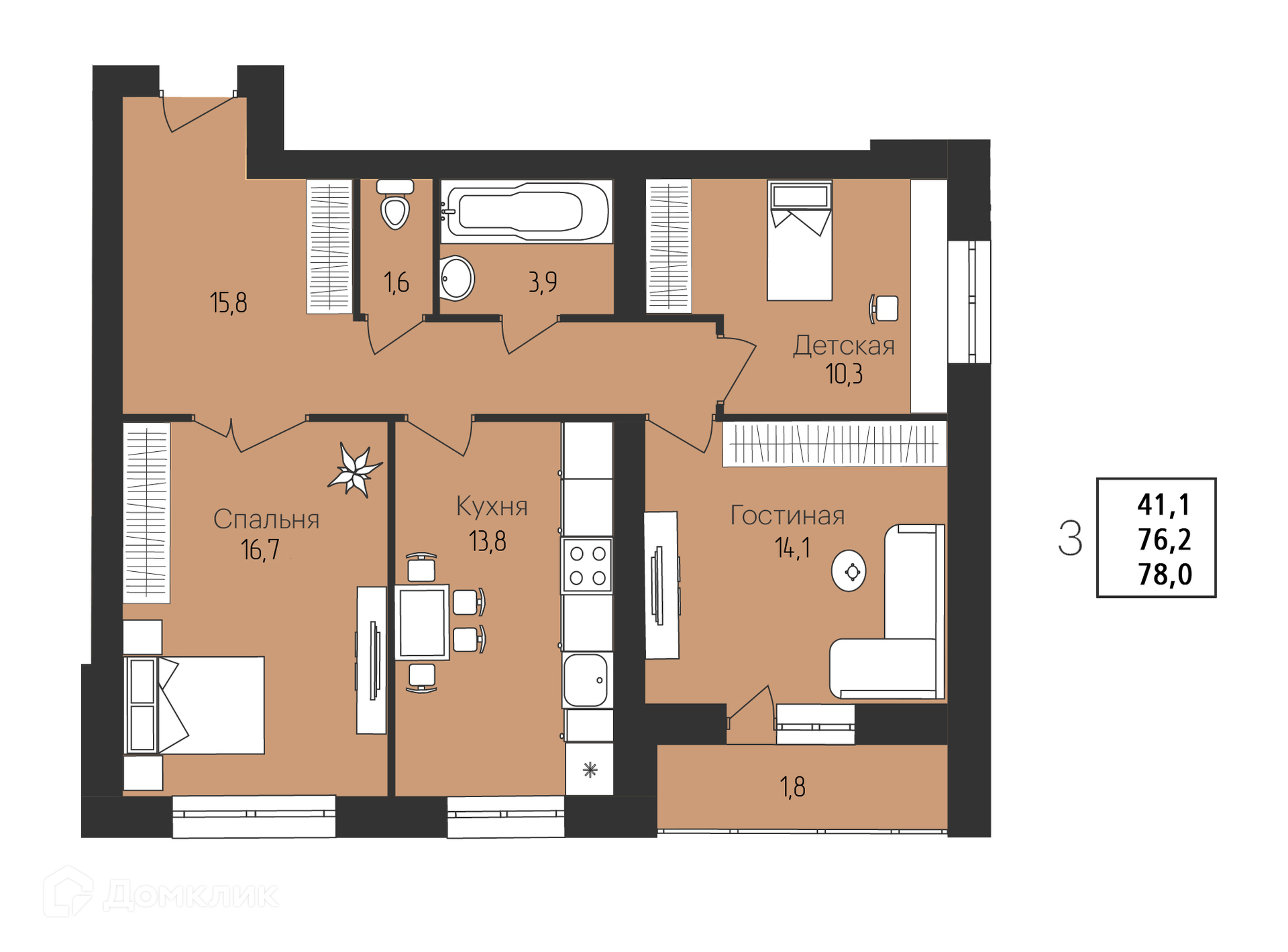 Площади квартир