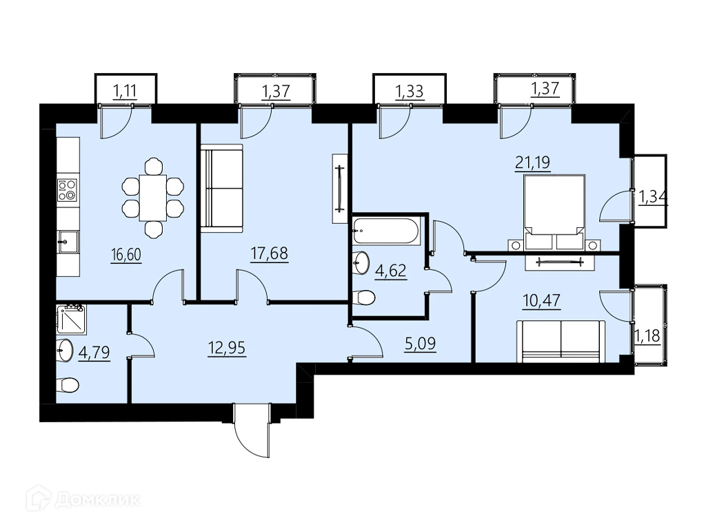 Площади квартир
