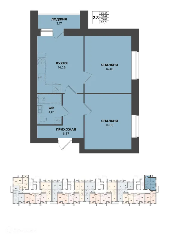 2 комн. квартира в Саранске в ипотеку от 44 787 руб/месяц