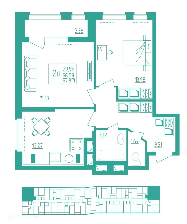 2 комн. квартира в Саранске в ипотеку от 62 897 руб/месяц