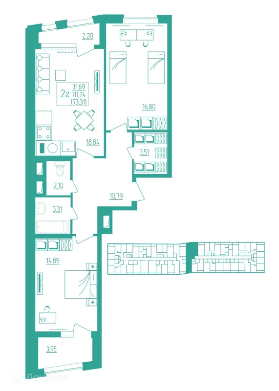 2 комн. квартира в Саранске в ипотеку от 150 094 руб/месяц