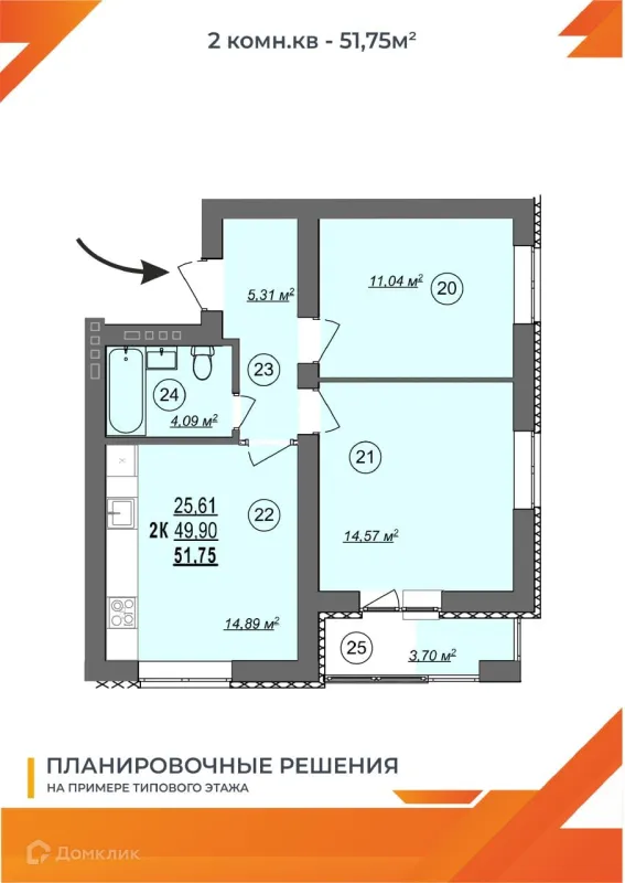 2 комн. квартира в Саранске в ипотеку от 22 989 руб/месяц