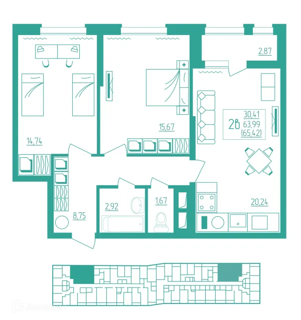 2 комн. квартира в Саранске в ипотеку от 56 170 руб/месяц