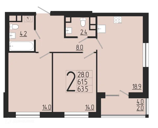 2 комн. квартира в Саранске в ипотеку от 55 498 руб/месяц