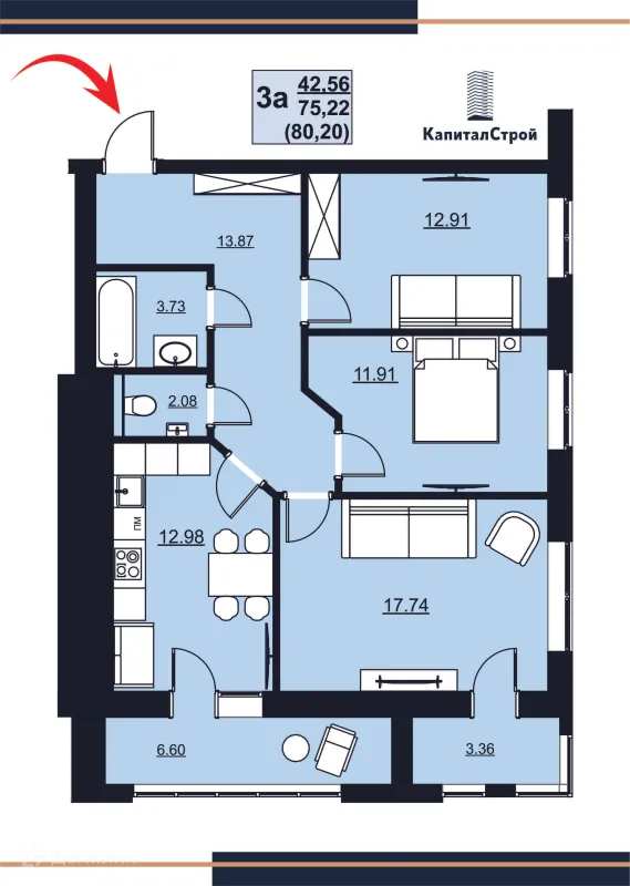 3 комн. квартира в Саранске в ипотеку от 77 965 руб/месяц