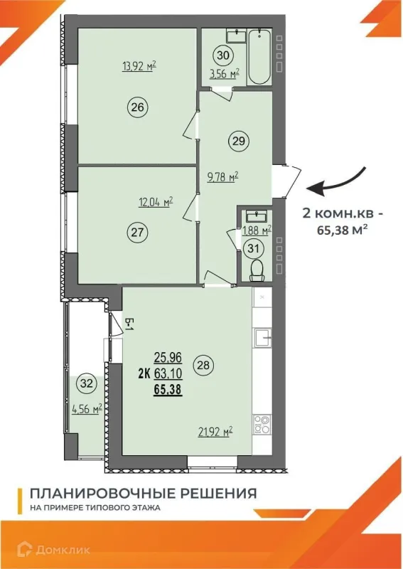 2 комн. квартира в Саранске в ипотеку от 66 634 руб/месяц