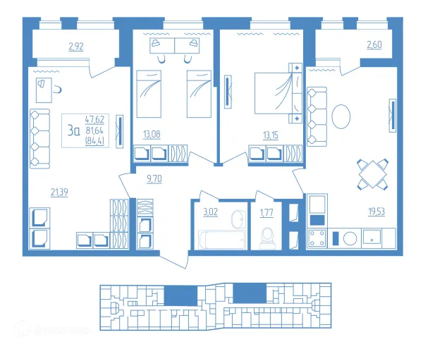 3 комн. квартира в Саранске в ипотеку от 72 408 руб/месяц