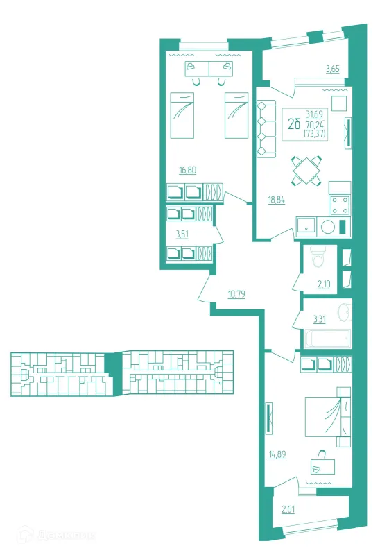 2 комн. квартира в Саранске в ипотеку от 62 948 руб/месяц