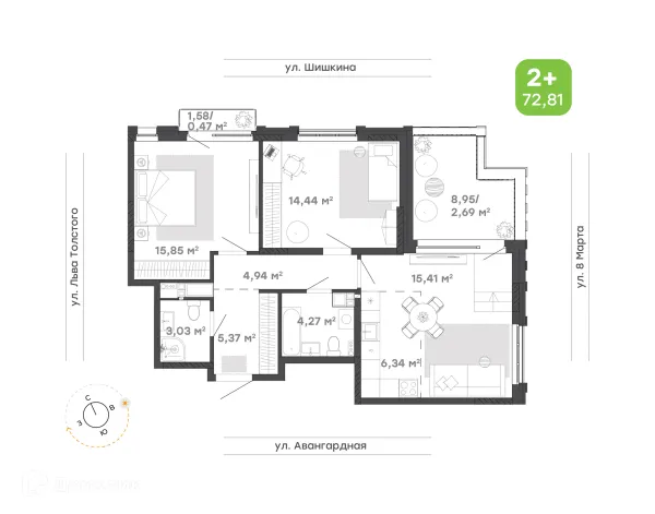 2 комн. квартира в Ижевске в ипотеку от 47 127 руб/месяц