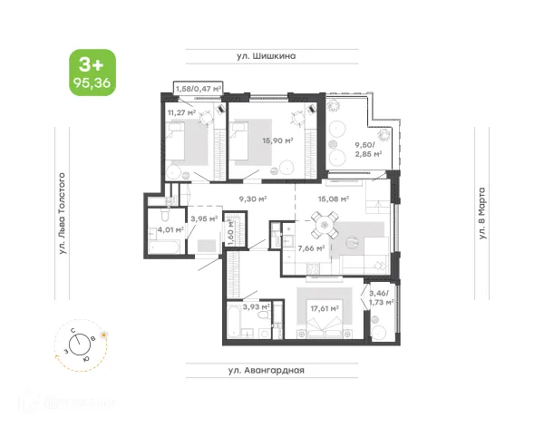 3 комн. квартира в Ижевске в ипотеку от 54 127 руб/месяц