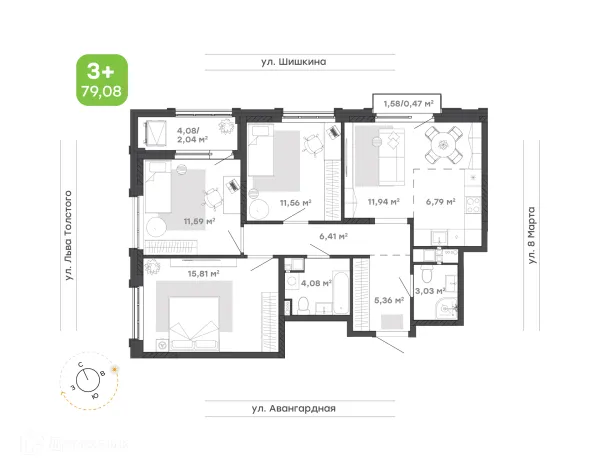 3 комн. квартира в Ижевске в ипотеку от 54 779 руб/месяц