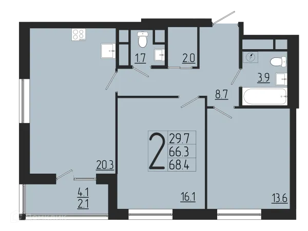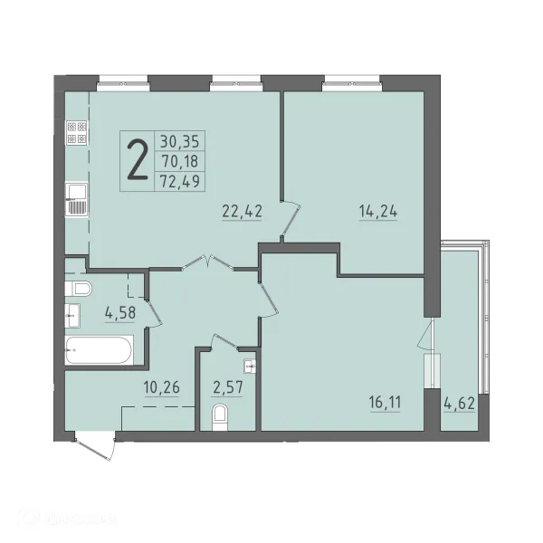 2 комн. квартира в Саранске в ипотеку от 148 030 руб/месяц