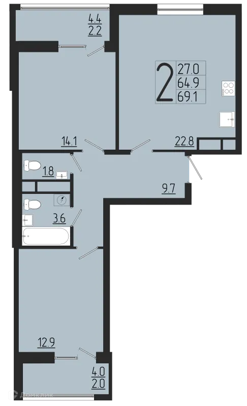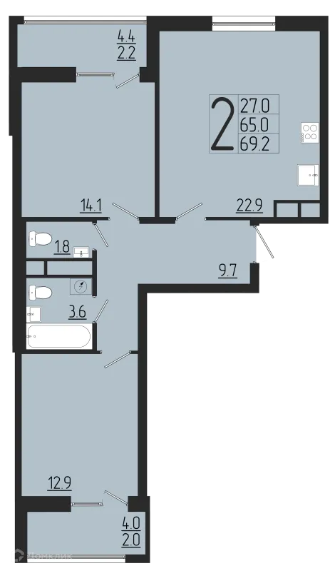 2 комн. квартира в Саранске в ипотеку от 34 606 руб/месяц