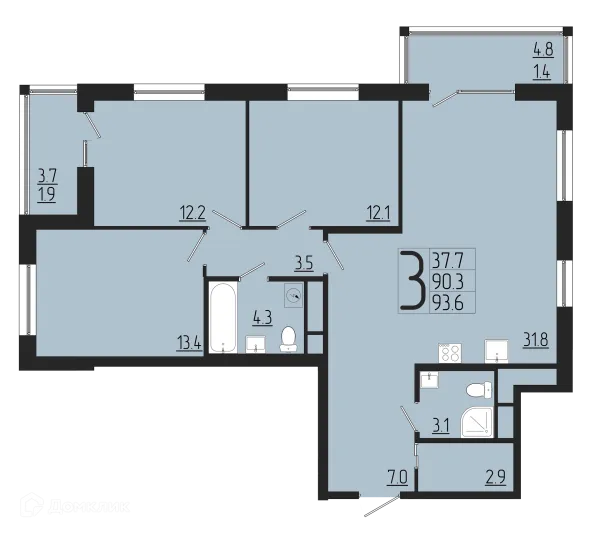 3 комн. квартира в Саранске в ипотеку от 213 657 руб/месяц