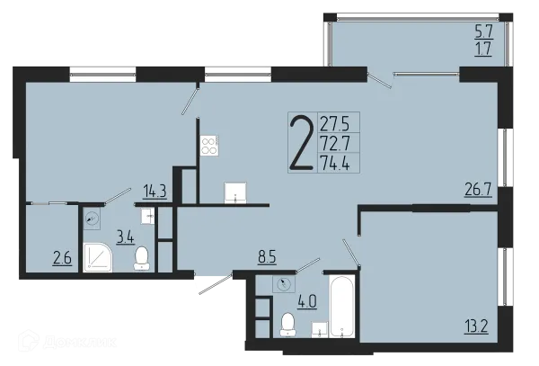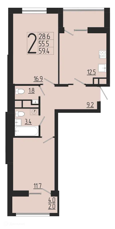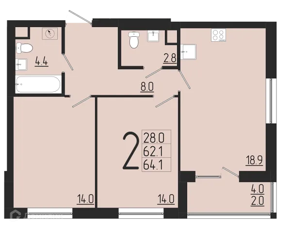 2 комн. квартира в Саранске в ипотеку от 172 576 руб/месяц