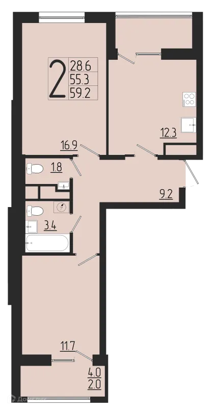 2 комн. квартира в Саранске в ипотеку от 35 497 руб/месяц